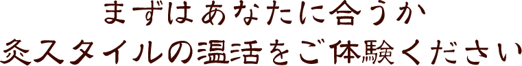 灸スタイルでは、外部から熱をいれることに特化し、整体で体全体の血行を良くし、お灸で温熱刺激を加え、足湯とハーブティーで身体の内側から身体を温めます。