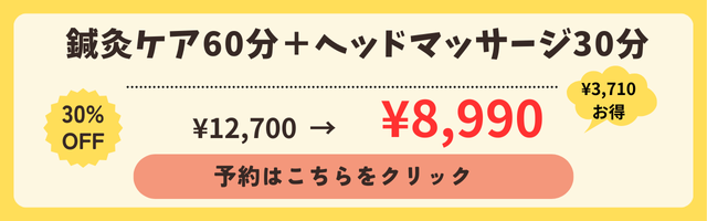①鍼灸ケア60分+ドライヘッドマッサージ30分(¥12,700→ ¥8,990)