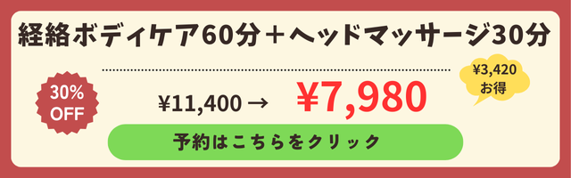 ③経絡ボディケア60分+ヘッドマッサージ30分(¥11,400→ ¥7,980)