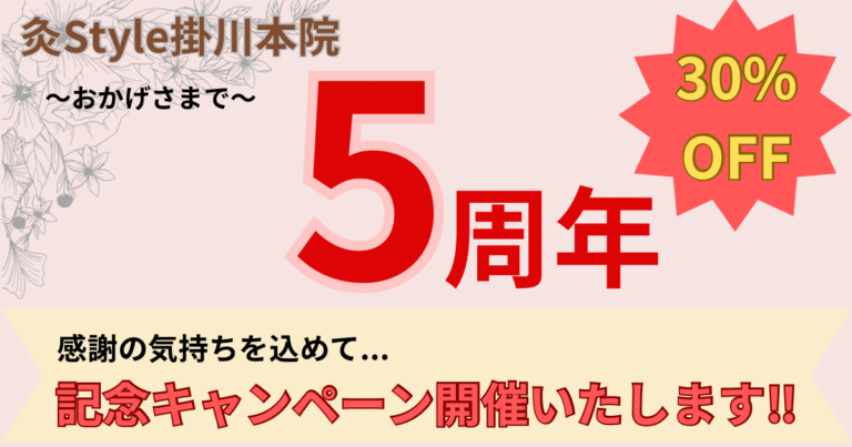 こんにちは。掛川の整体・鍼灸院「灸Style掛川本院」です。 灸Style掛川本院は、おかげさまで9 […] -